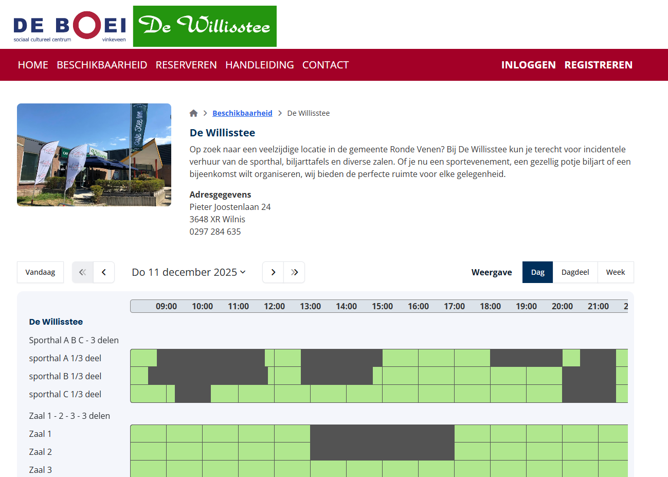 Wil je weten welke zalen er vrij zijn? Vanaf nu is de beschikbaarheid van alle ruimtes in De Willisstee direct online te zien. Is er een geschikte zaal beschikbaar? Dan kun je meteen een aanvraag indienen.